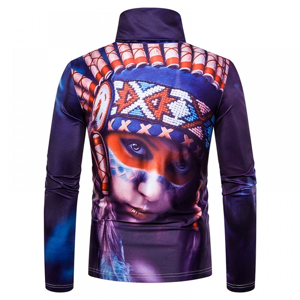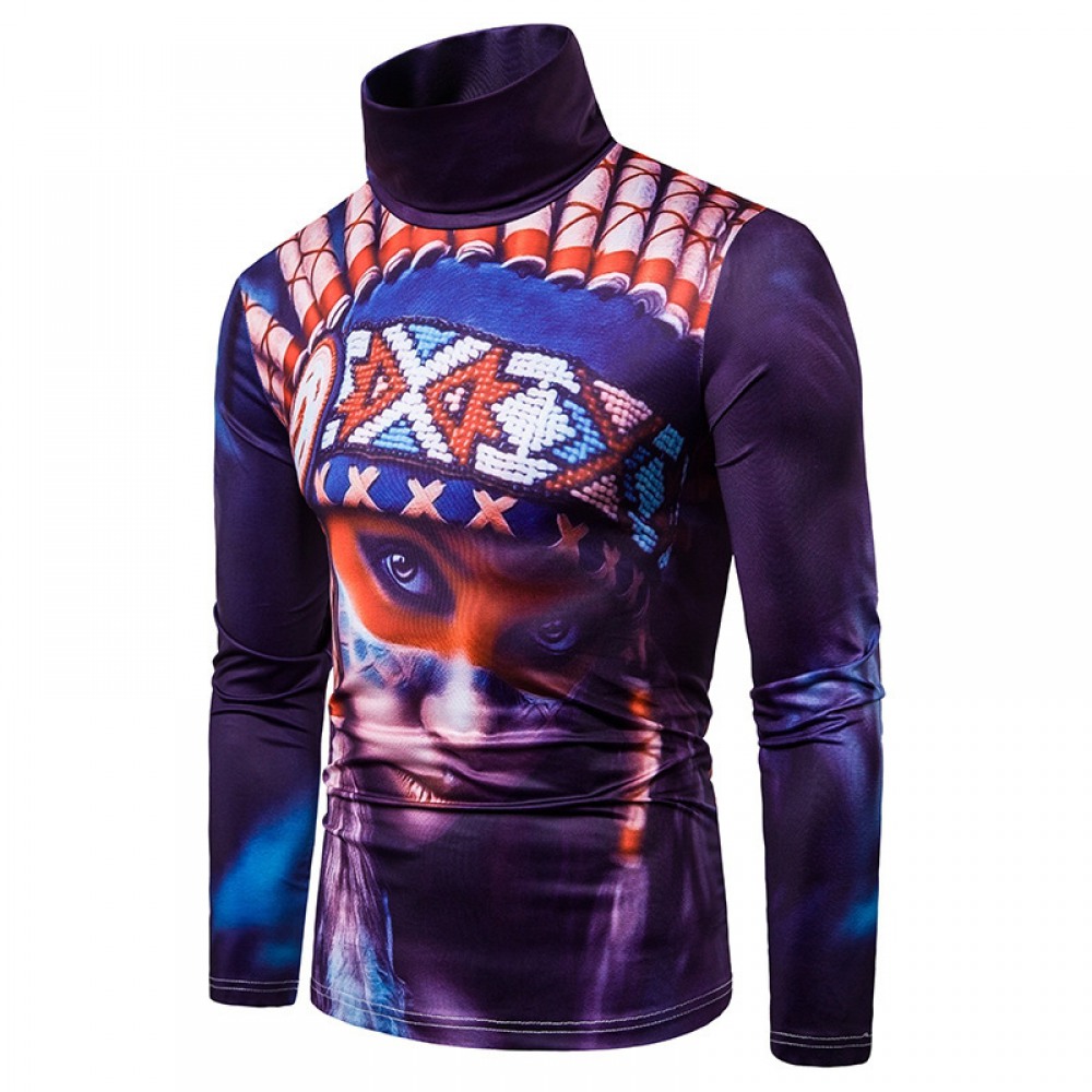 New Men's Large Size 3D Character Print High Neck Long Sleeve T-Shirt Bottoming Shirt