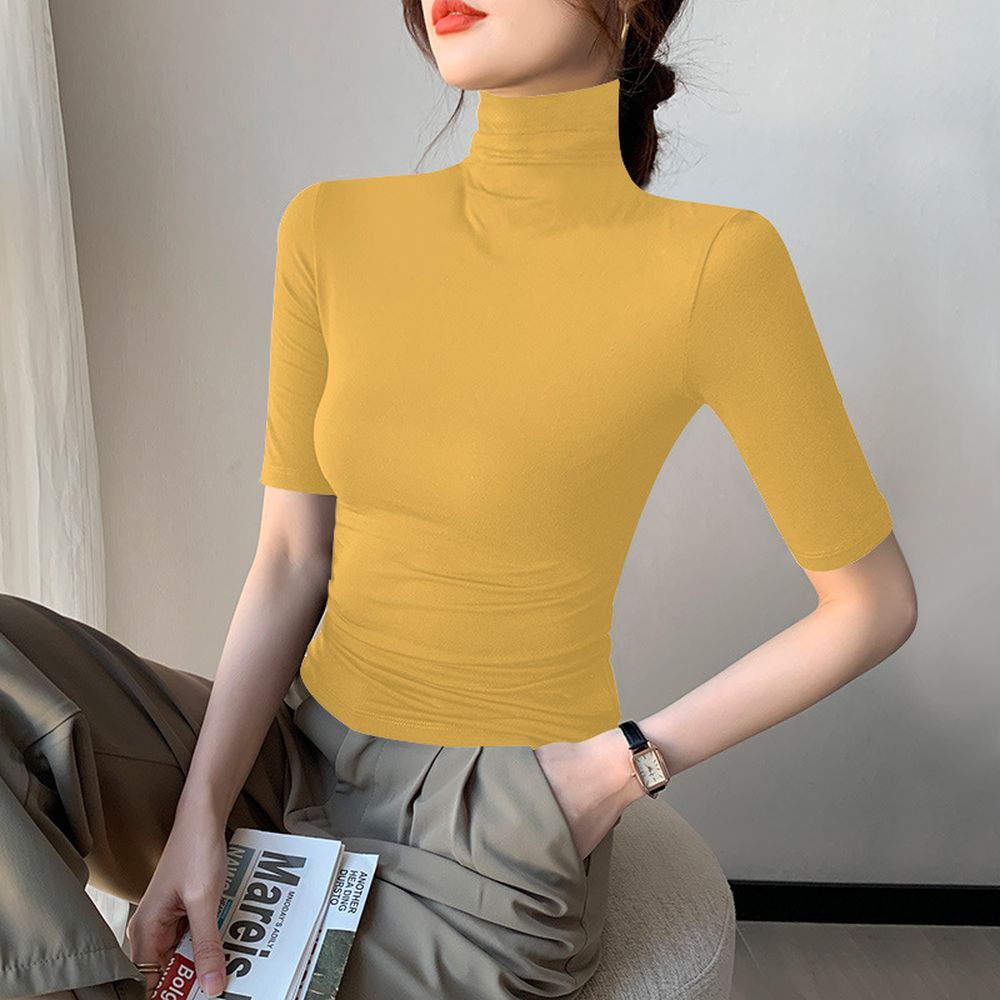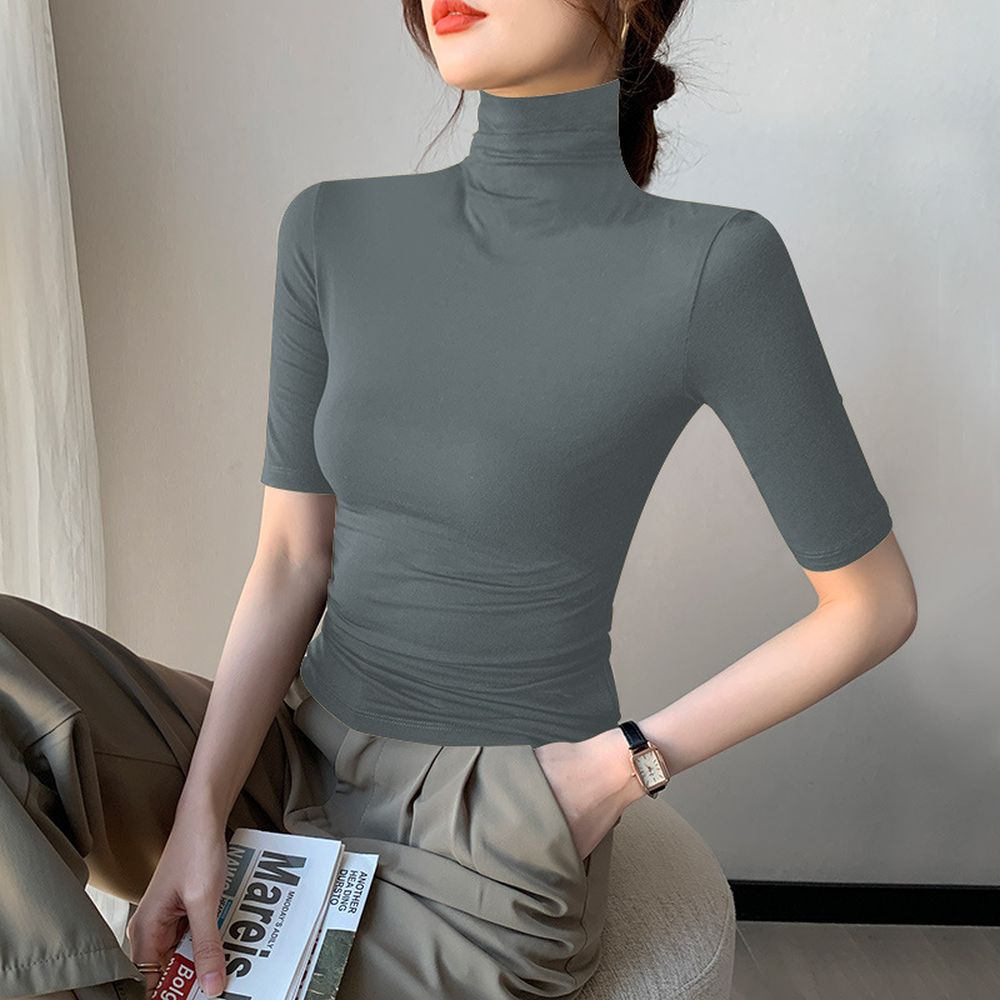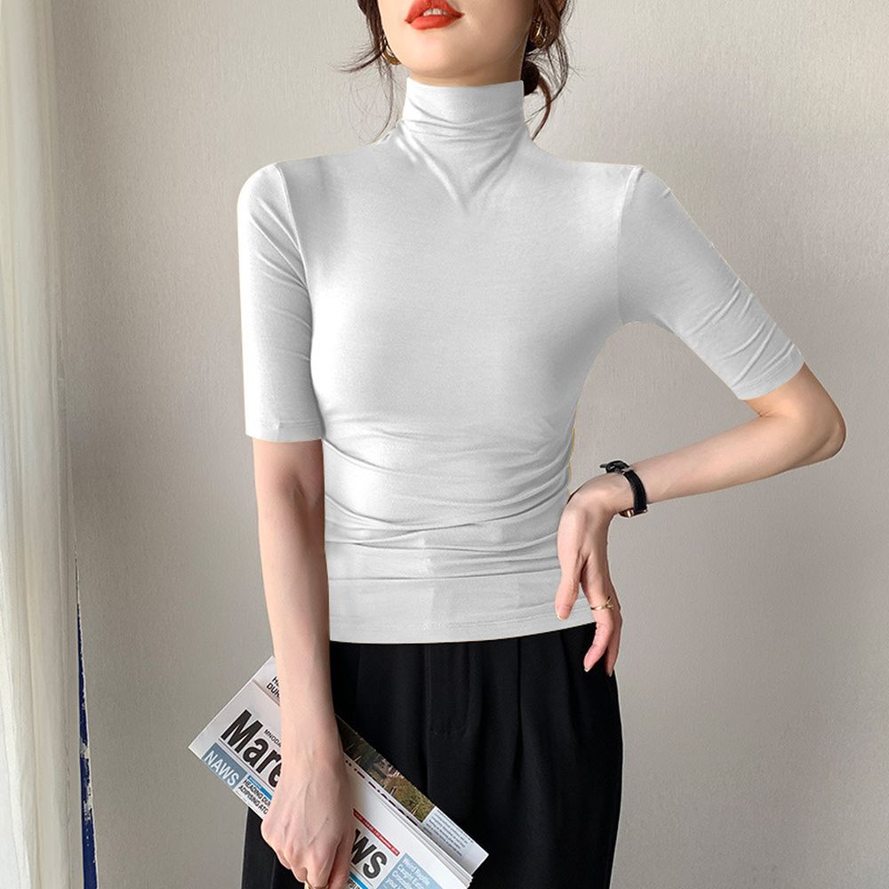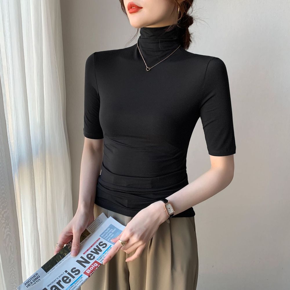Turtleneck Cotton Modal Mid-Sleeve T-Shirt Women's Slim Short Top