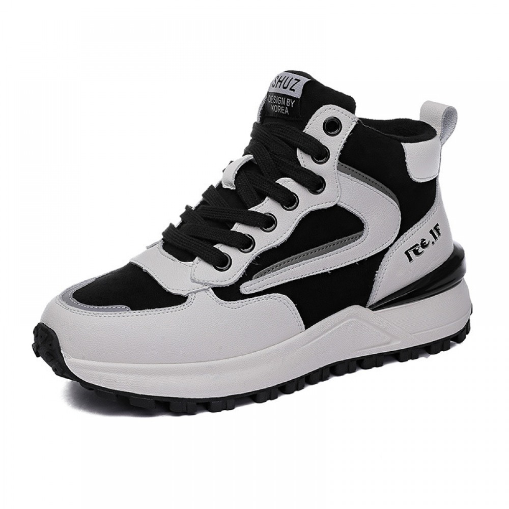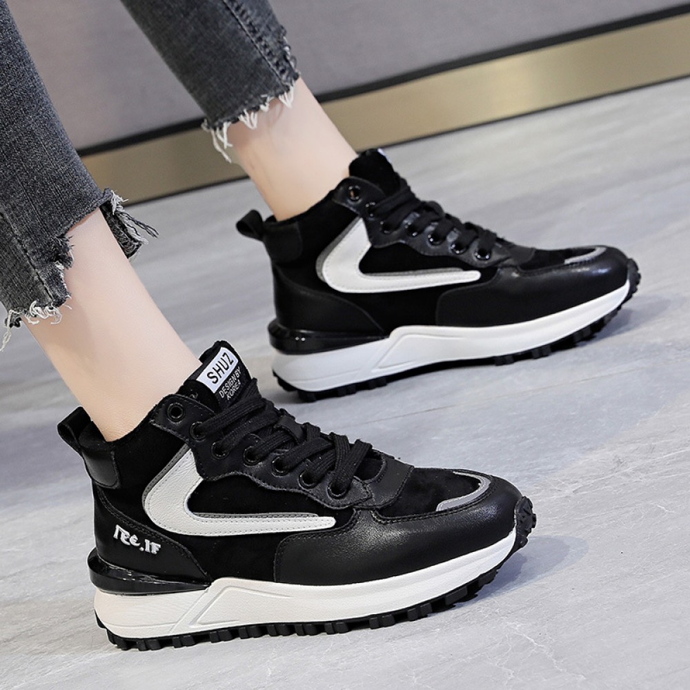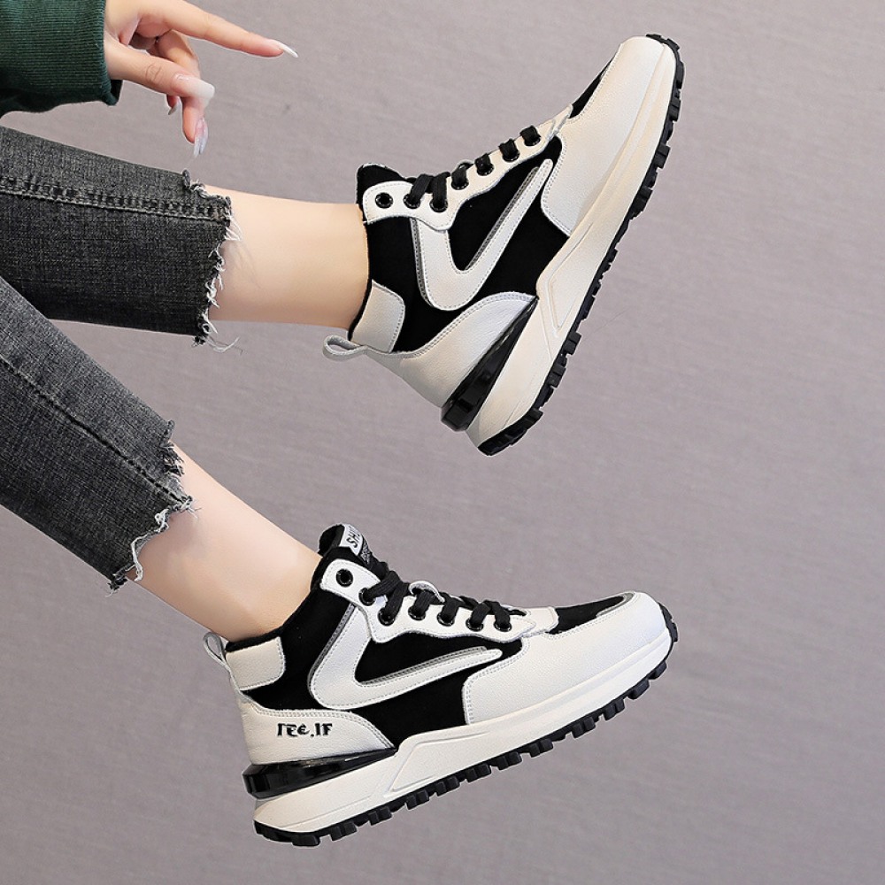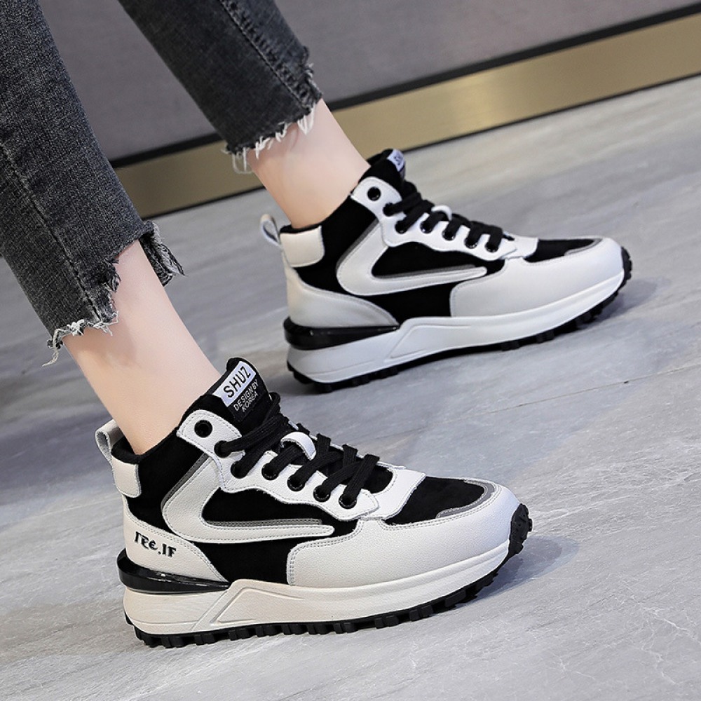 Casual Shoes Women's New High-Top Womens Shoes Plus Velvet Color Matching Warm and Thick Bottom Women