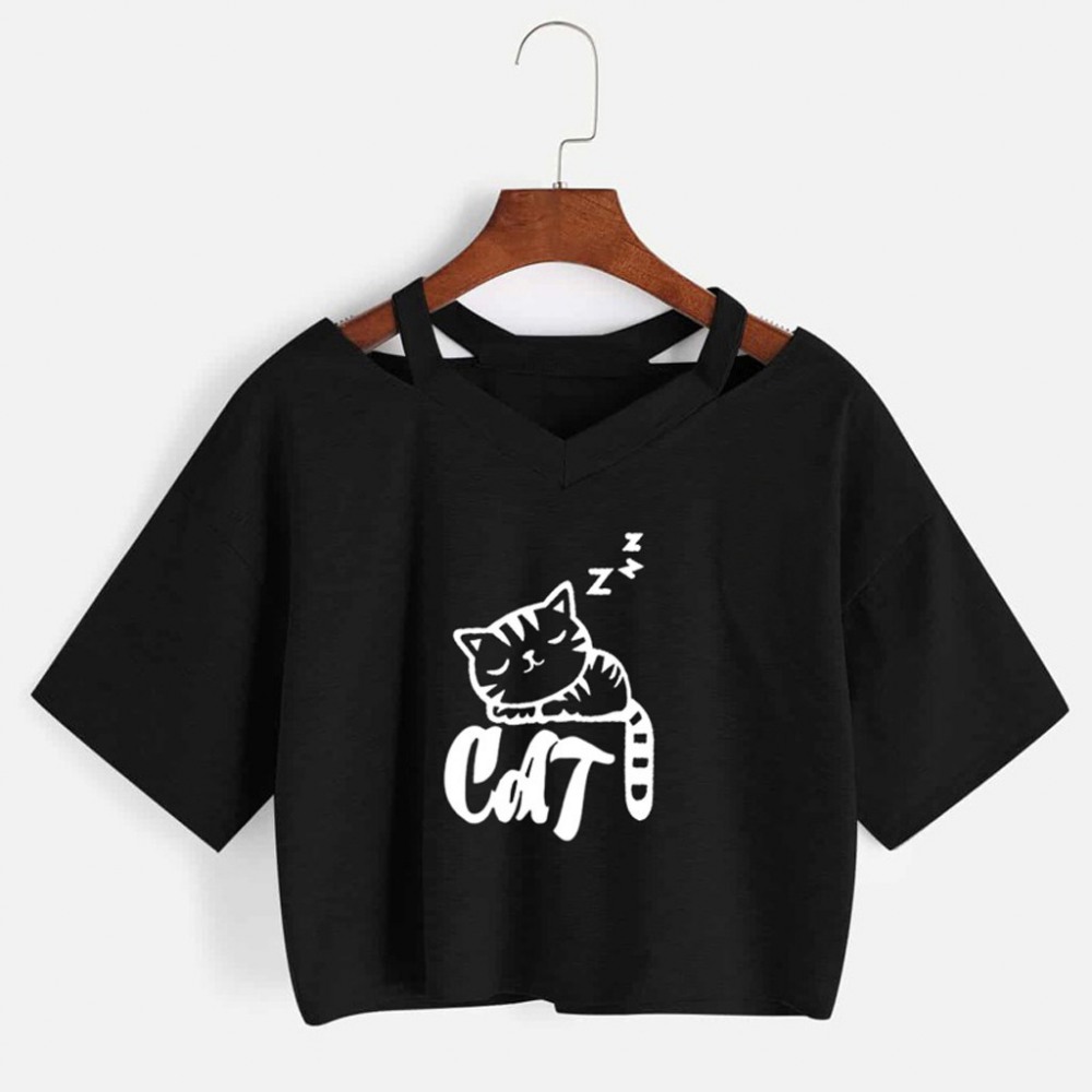 Explosive Cat Print V-Neck Short T-Shirt