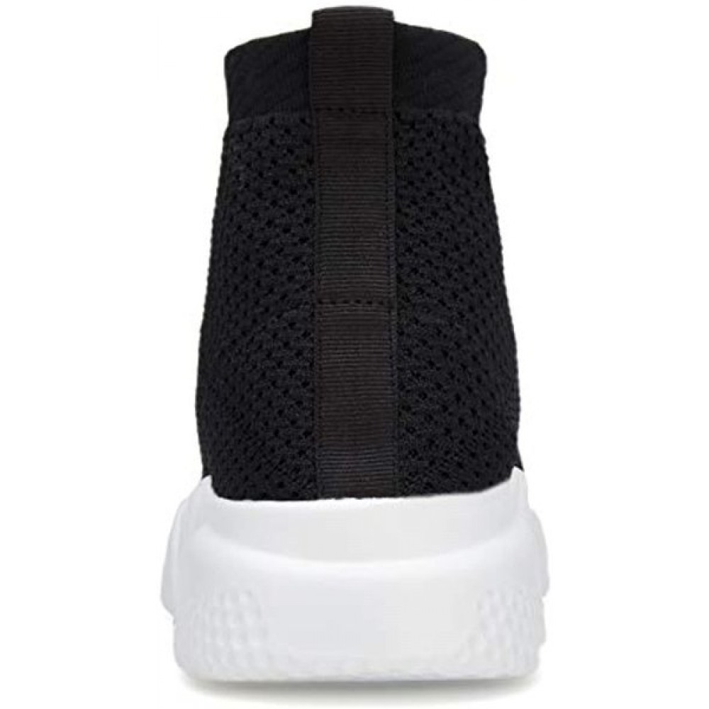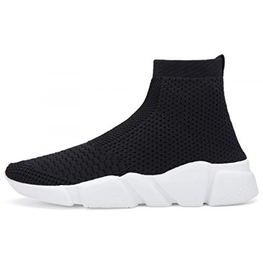 Men's Running Shoes Breathable Knit Slip On Sneakers Lightweight Athletic Shoes Casual Sports Shoes High Top Black