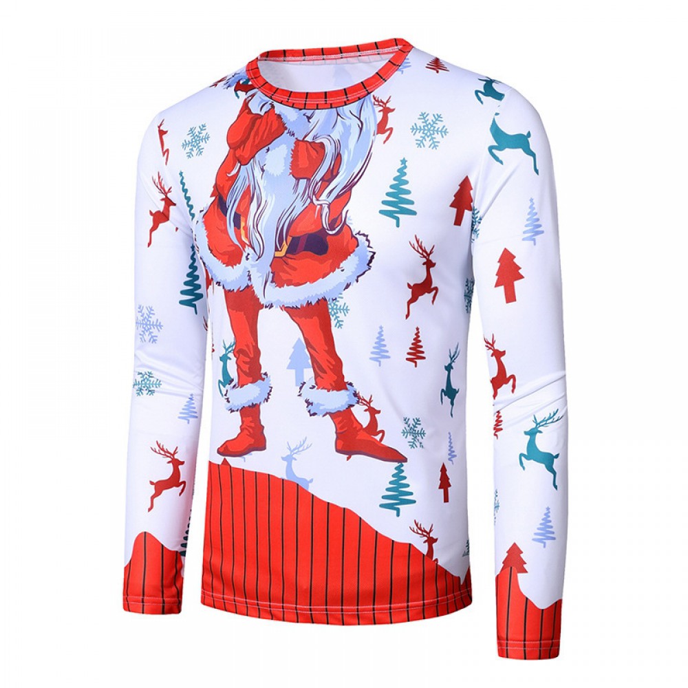 New 3D Personality Printing Fashion Men's Christmas Long Sleeve T-Shirt