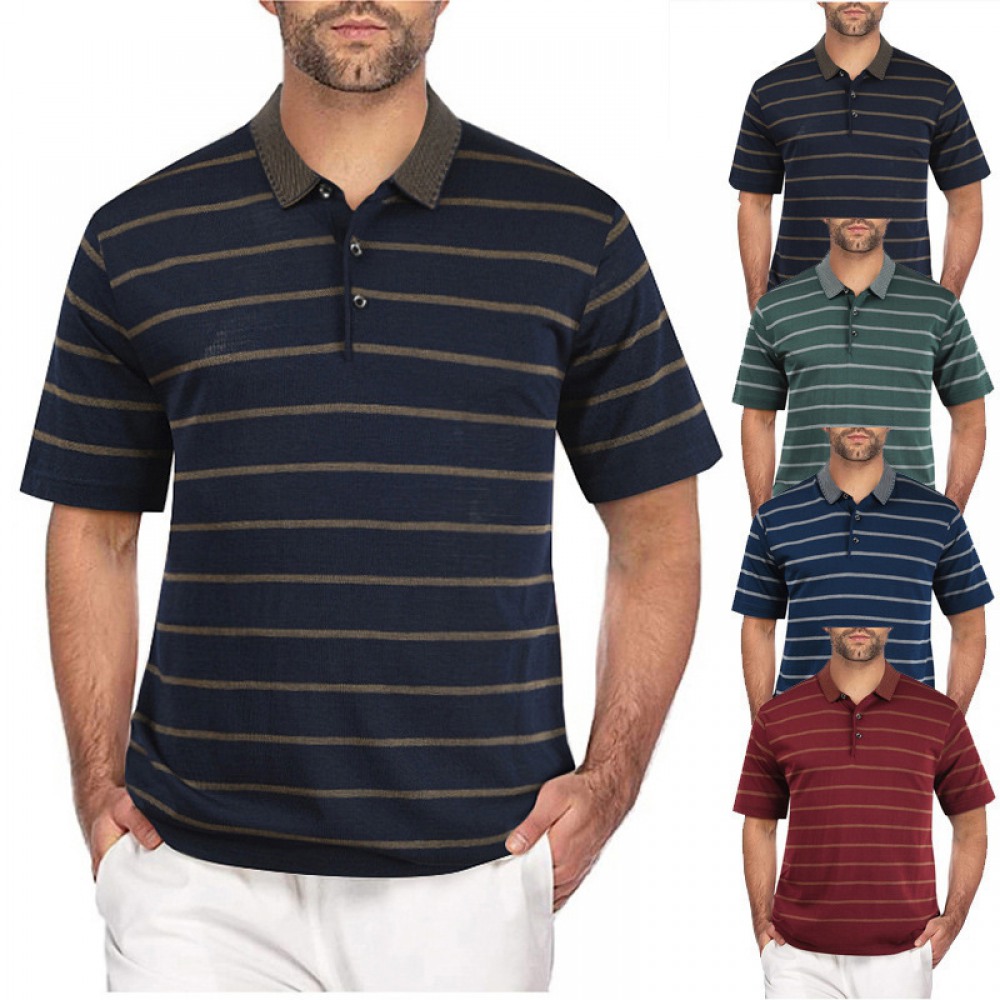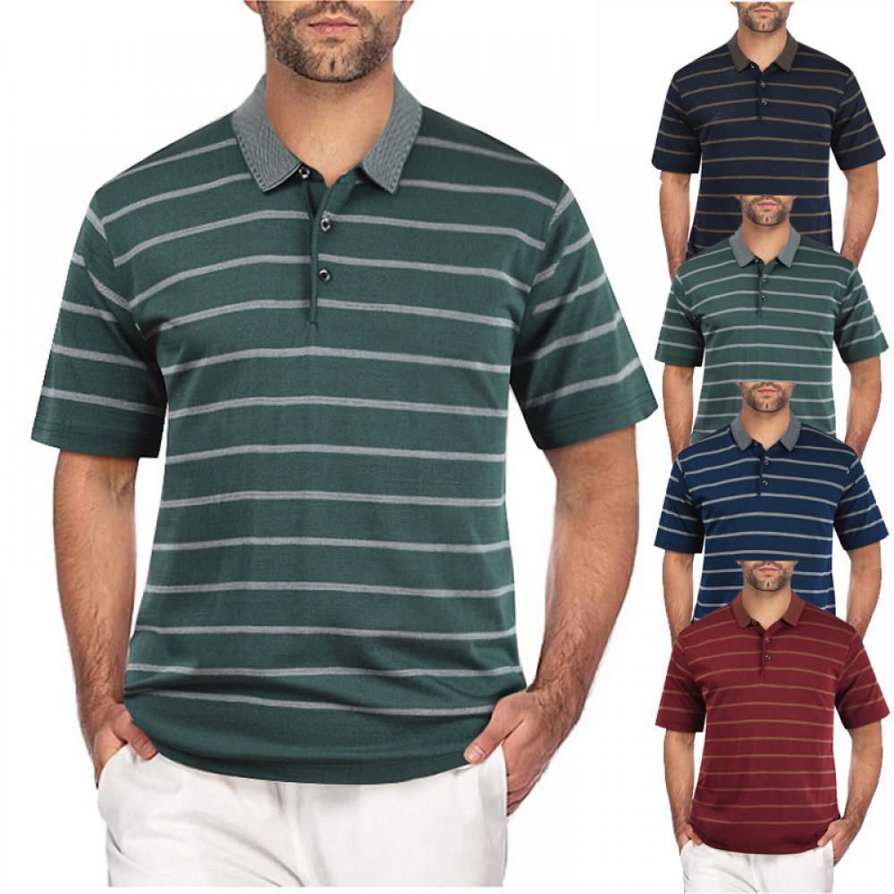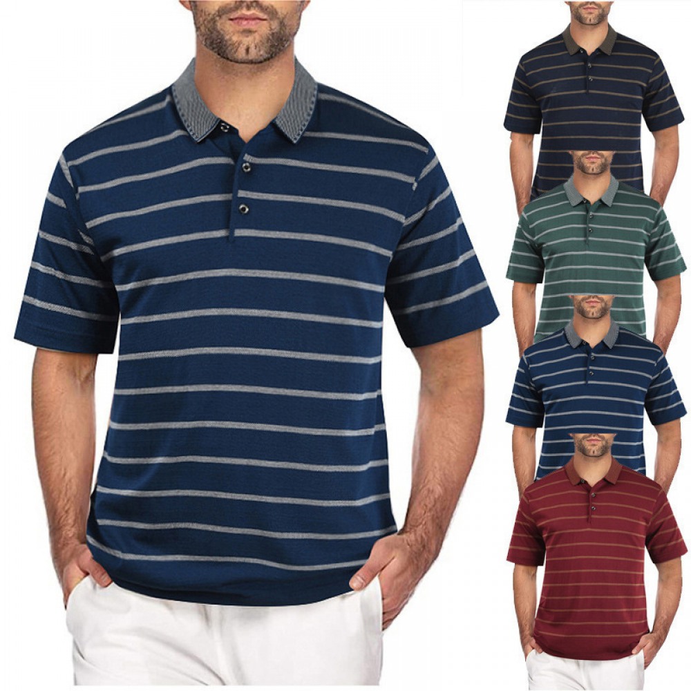 New Style Summer Fashion Men's Personality Simple Striped Lapel T-Shirt Mens Short-Sleeved Shirt