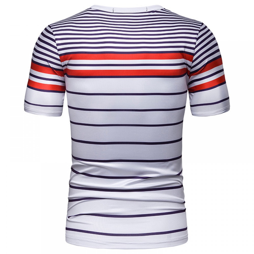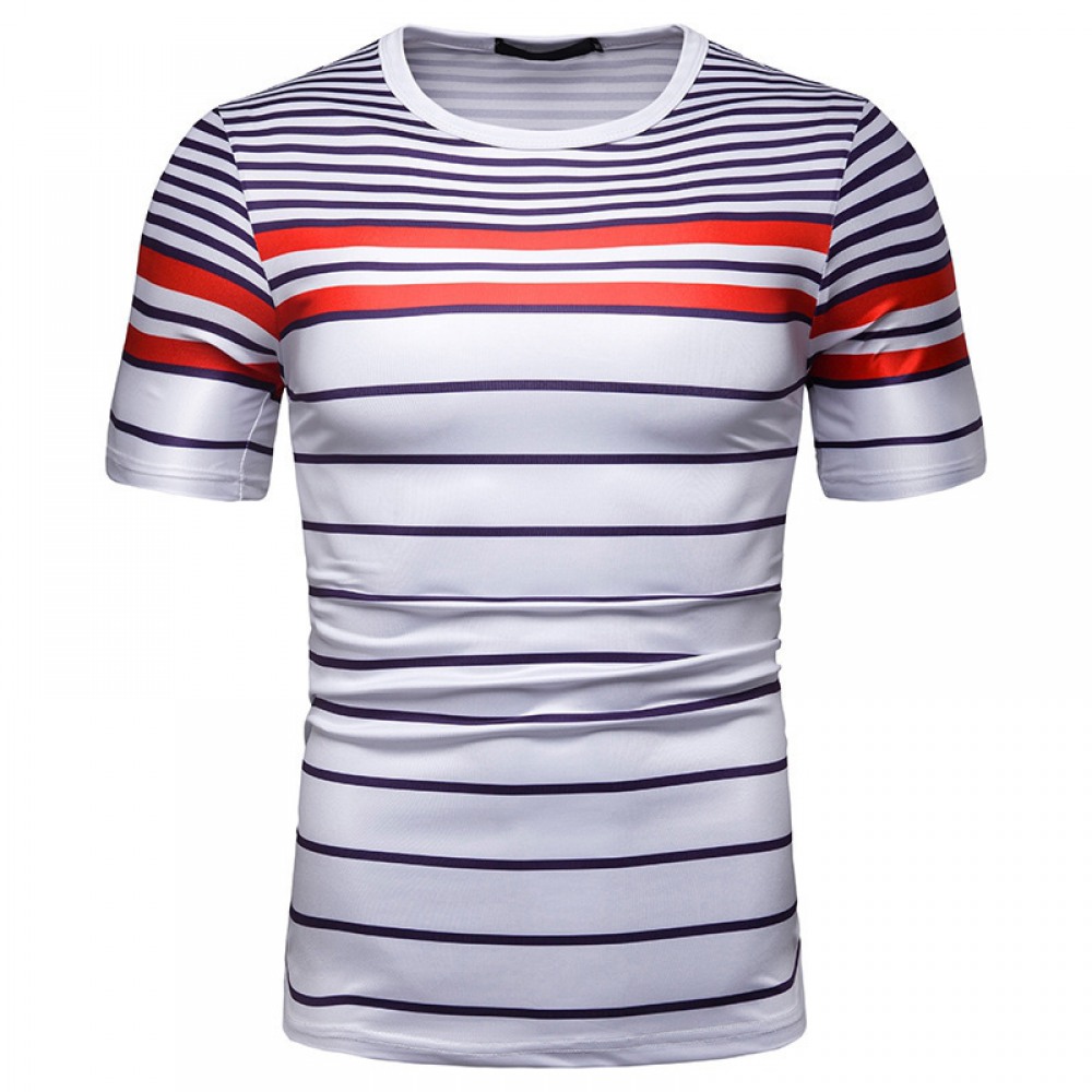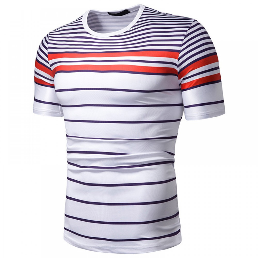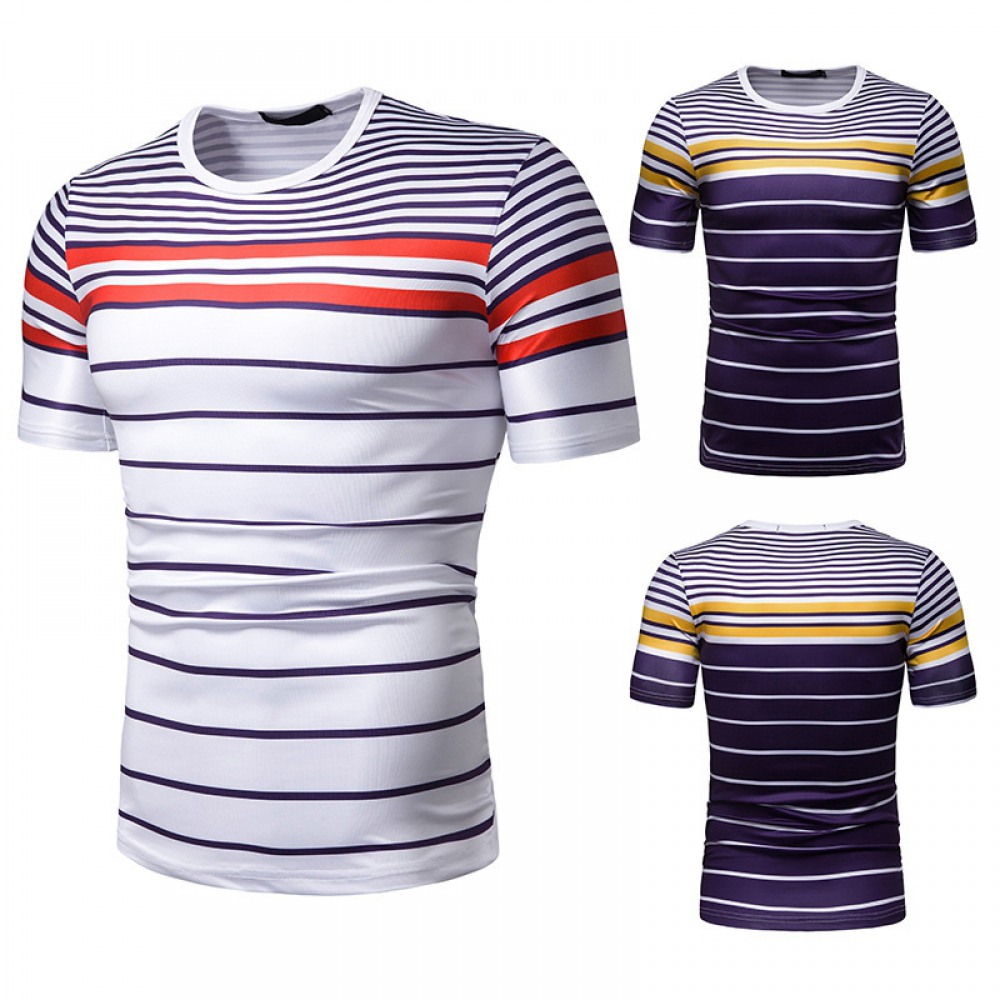 New Summer Men's Short-Sleeved T-Shirt Mens Contrast Striped Slim Casual T-Shirt